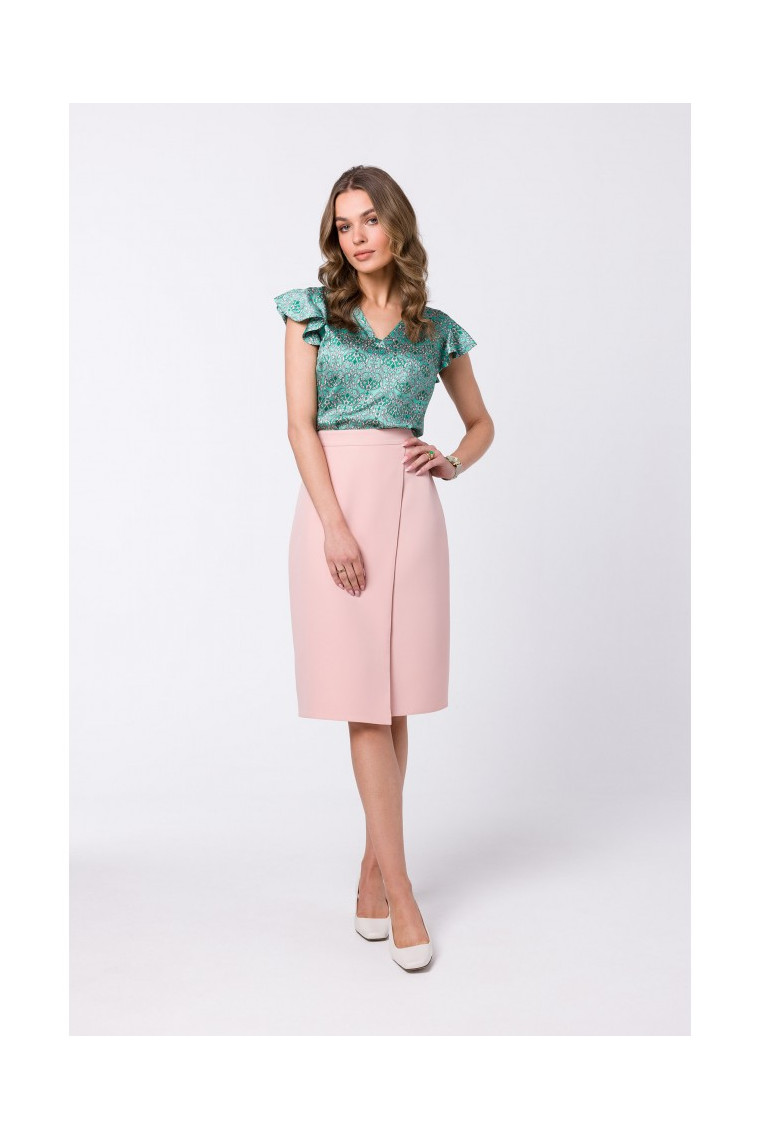 Stylove S343 A līnijas svārki ar ietīšanas detaļu - pūderis