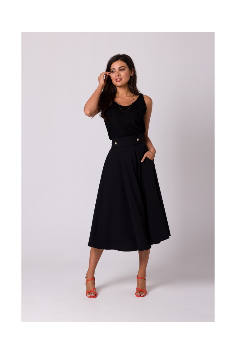 Šie svārki ir ļoti sievišķīgi ar augsto vidukli, plīvuru dizainu un dekoratīvām zelta pogām priekšpusē.