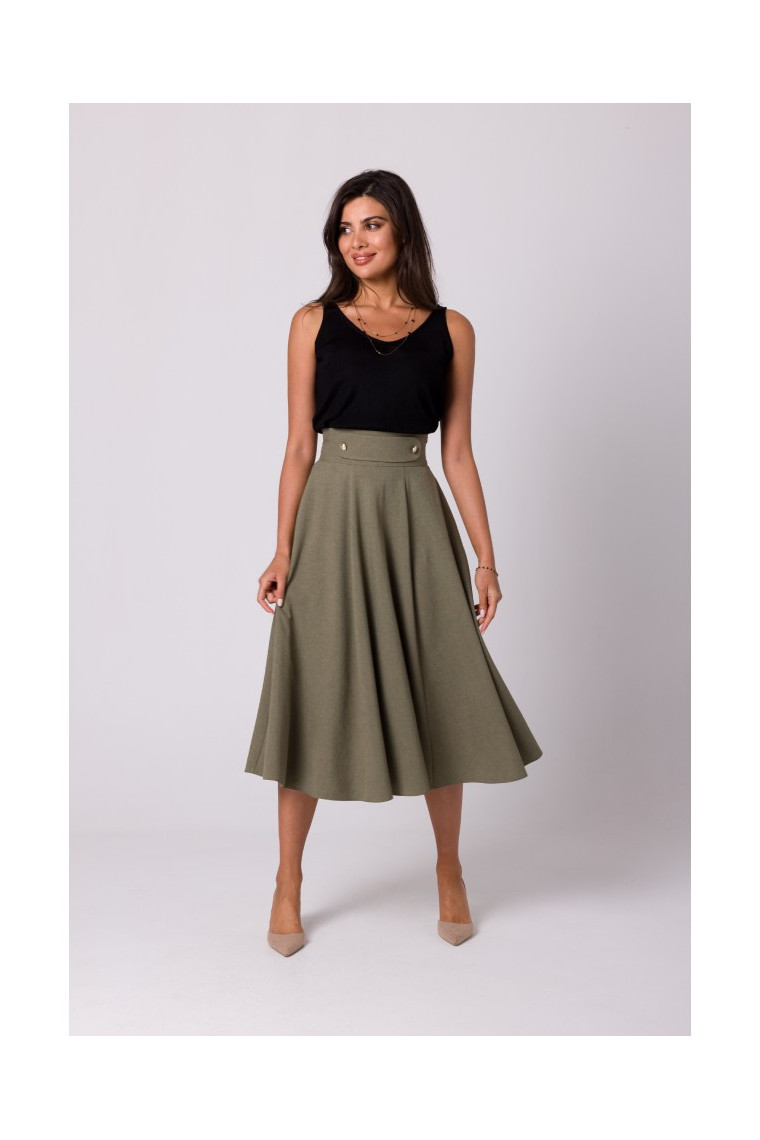 Šie svārki ir ļoti sievišķīgi ar augsto vidukli, plīvuru dizainu un dekoratīvām zelta pogām priekšpusē.