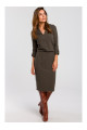 S194 Trikotāžas kleita ar V veida kakla izgriezumu - olīvu krāsā