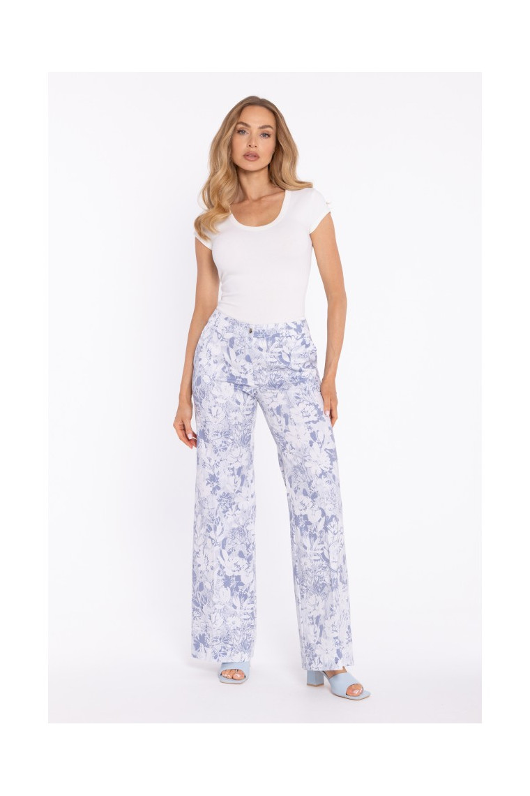 Stils: elegantas vidēji augstas bikses ar izteiksmīgu apdruku.