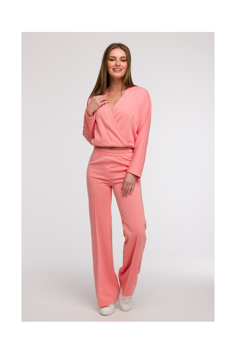 BEWEAR B296 Wide leg trousers with front seams - coral