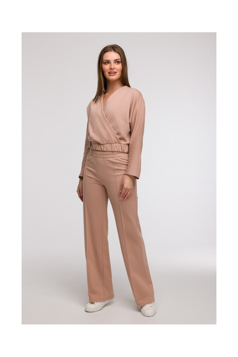 BEWEAR B296 Wide leg trousers with front seams - mocca