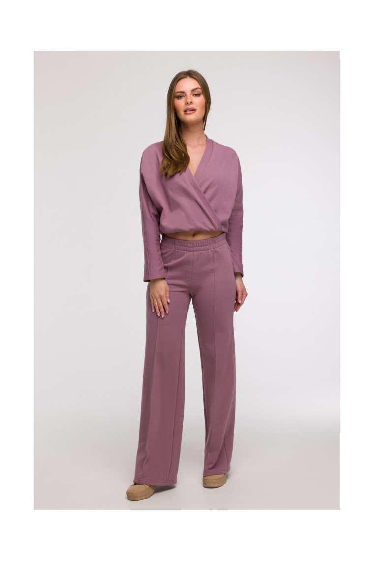 BEWEAR B296 Wide leg trousers with front seams - heather