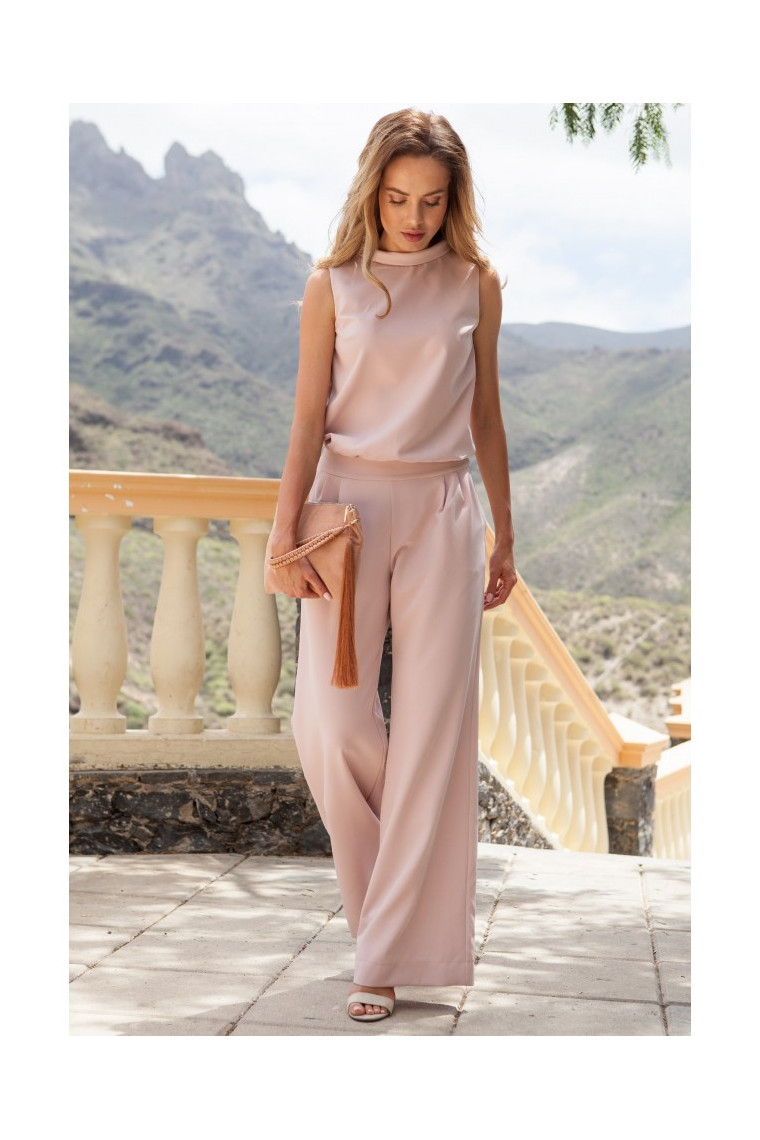 Elevate your evening look to glamorous heights in this sleeveless jumpsuit featuring flared legs, a rolled up neck and daring split back.