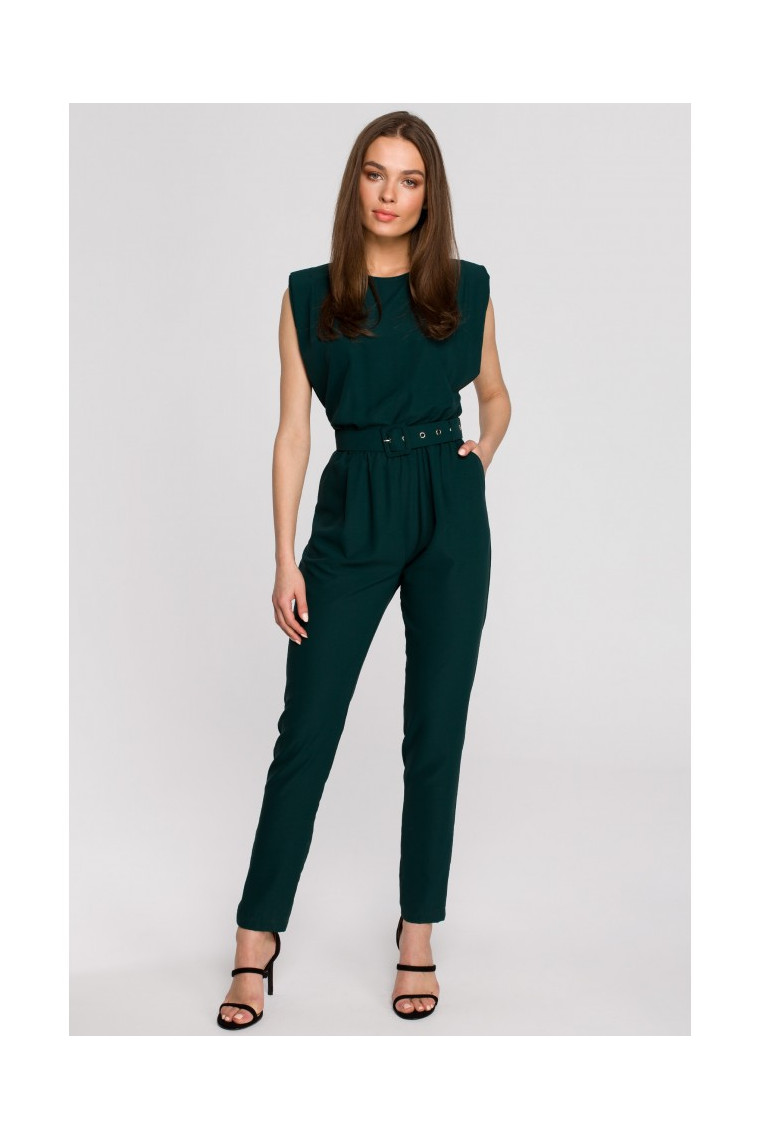 Stylove S259 Sleeveless jumpsuit with padded shoulders - green