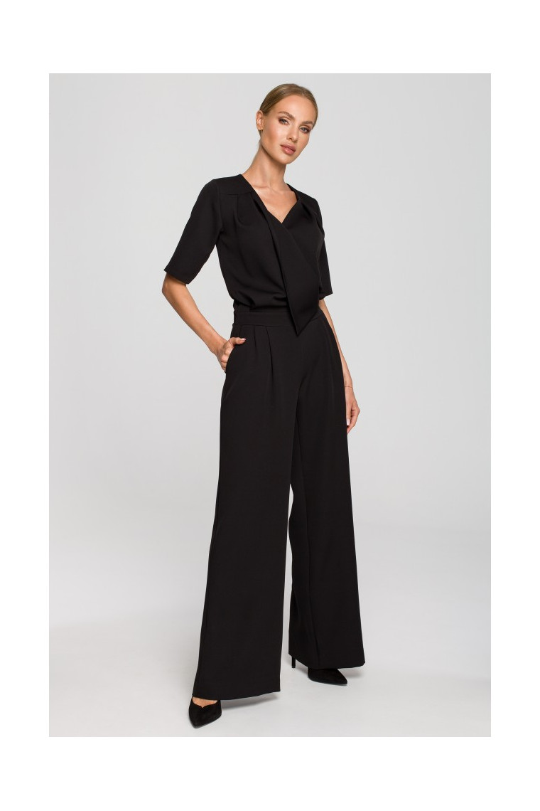 MOE M703 Jumpsuit ar dekoratīvu V veida kakla izgriezumu - melns
