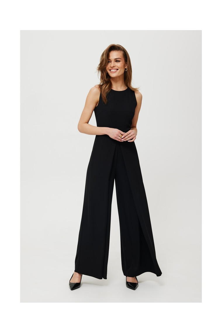makover K184 Plašs kombinezons ar platām kājām - melns