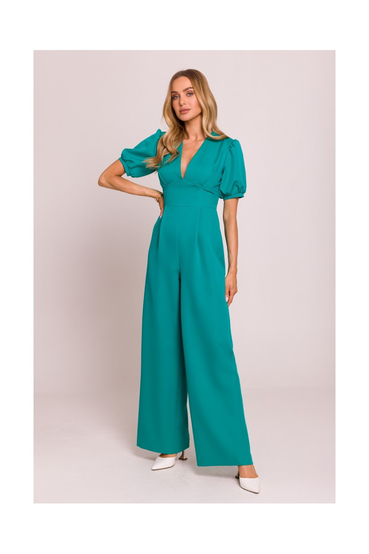 MOE M852 Puff sleeve jumpsuit - turquoise