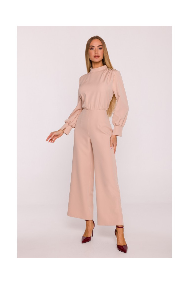 MOE M879 Jumpsuit with stand-up collar - beige