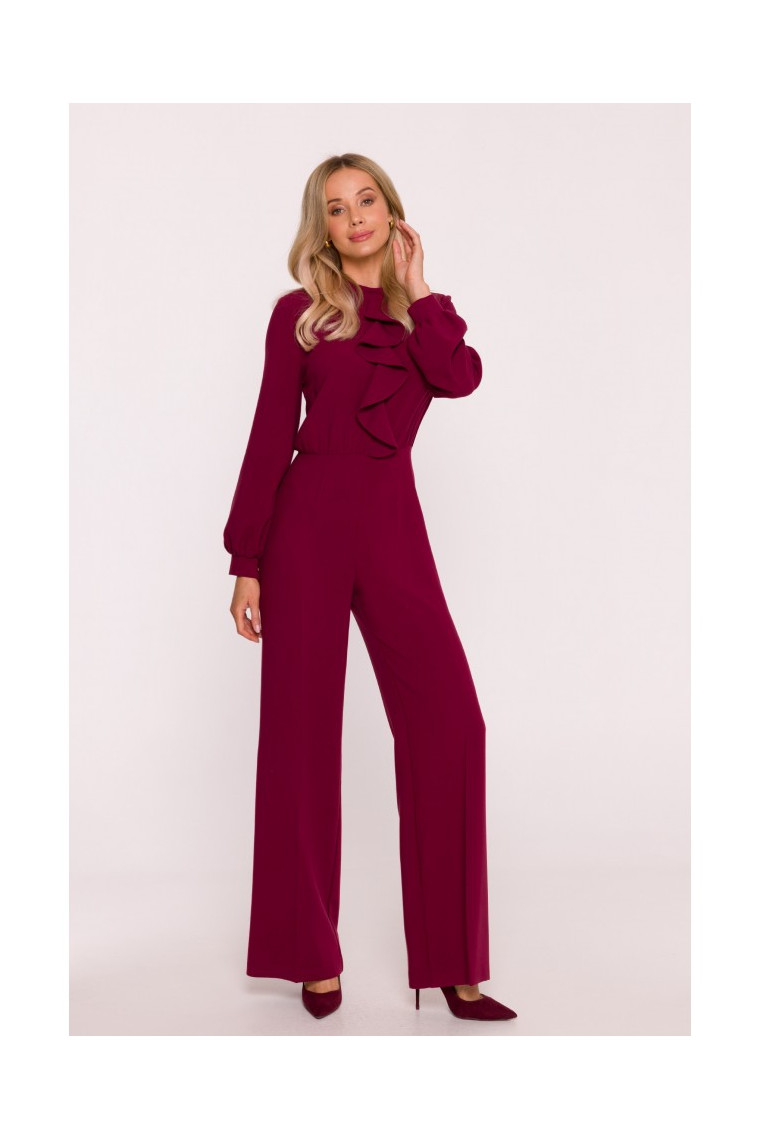 Stylove S420 Jumpsuit with a ruffle - maroon