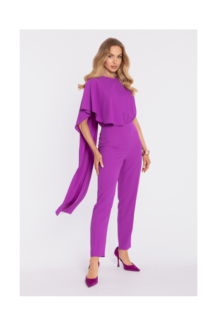 Stils: elegants kombinezons ar apmetņa augšdaļu un slaidām, līdz potītēm garām kājām.