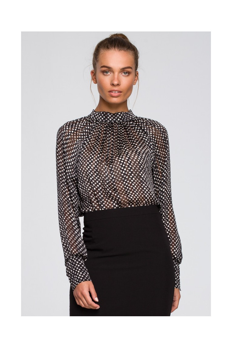 blouse with a stand-up collar