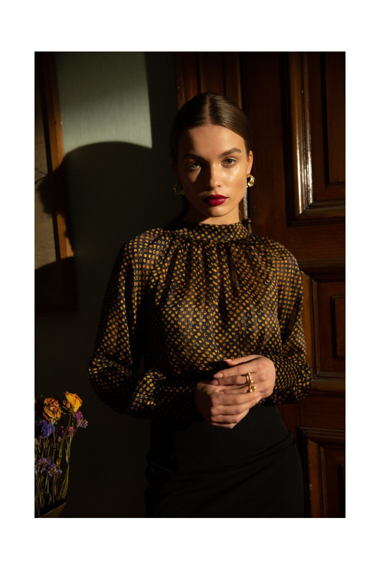 blouse with a stand-up collar