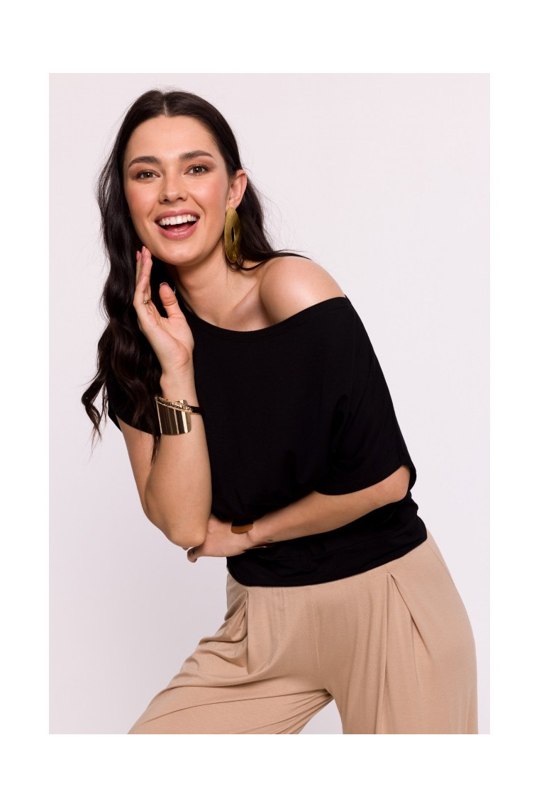 B287 Tops no viskozes ar izgriezumu bez plecu izgriezuma - melns