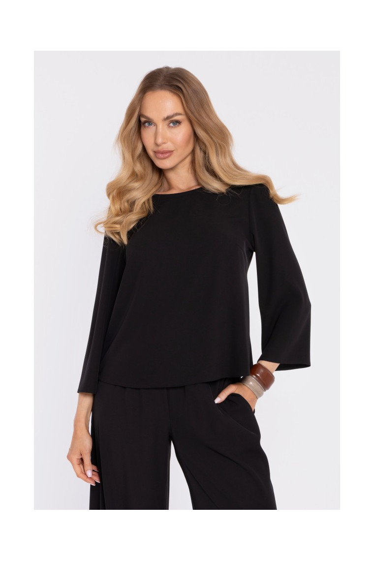 MOE M905 Eleganta blūze ar vaļējām piedurknēm - melna