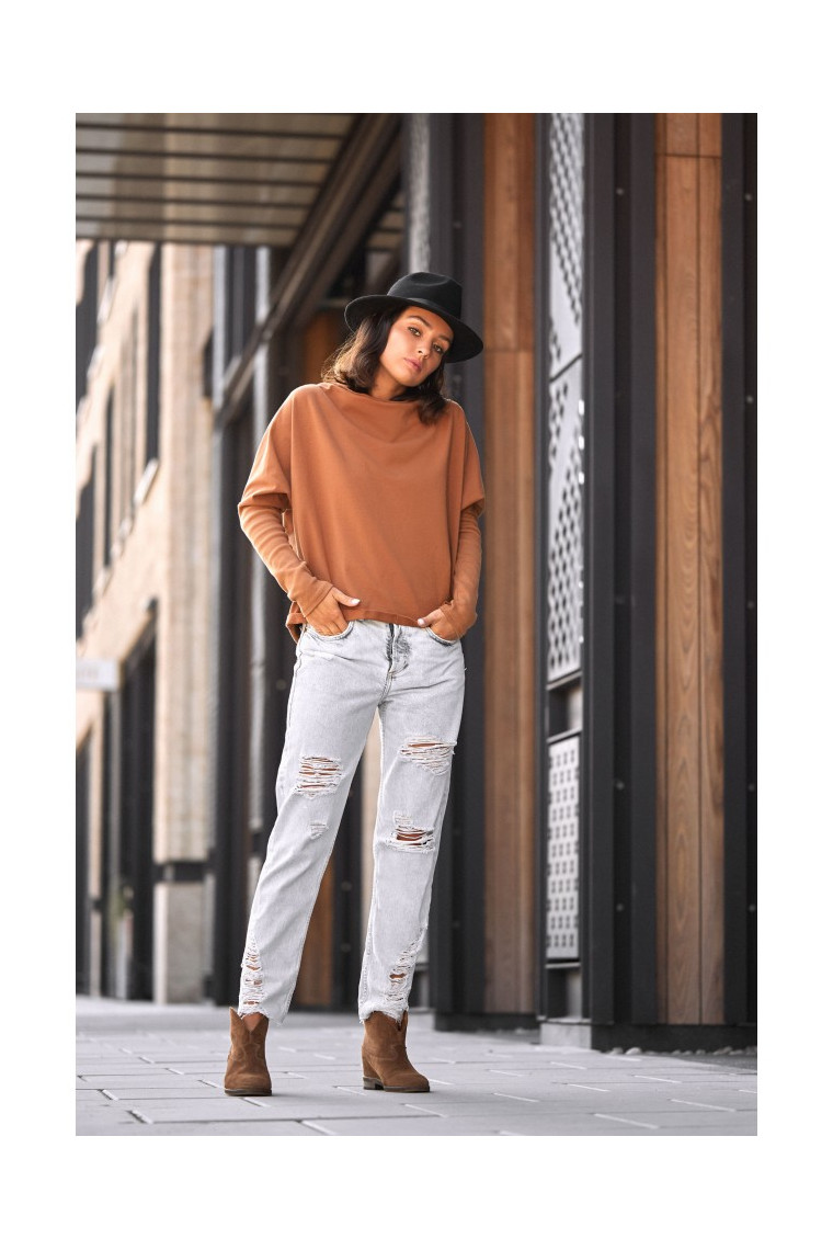 Lielgabarīta tops ar drapētu izgriezumu priekšpusē, V veida kakla izgriezumu aizmugurē un garām rievotām piedurknēm, kas nodrošinās komfortu katru dienu.