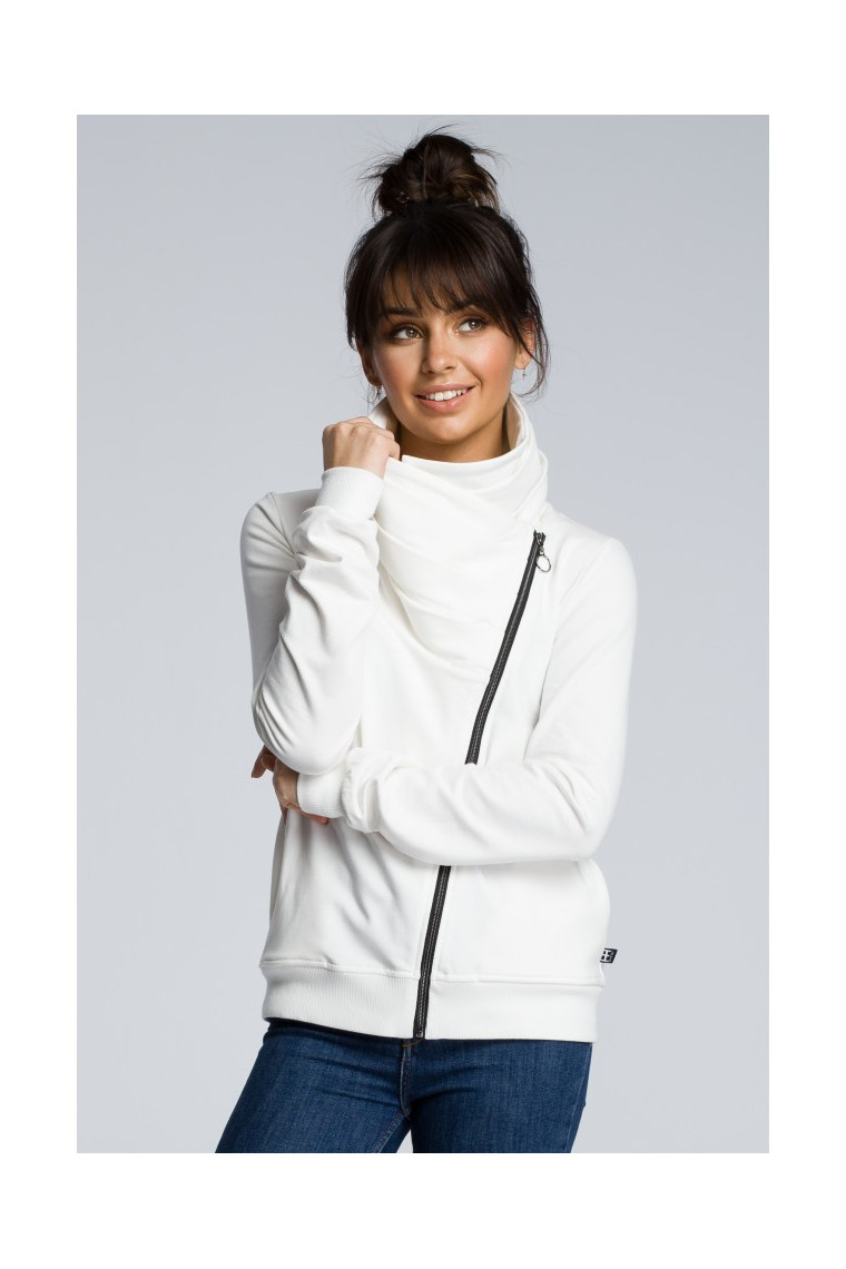 It is a zipped sweatshirt with a difference - high stand-up collar and an asymmetric zip. It looks good and keeps you warm whenever you go for a jog or a walk, or simply do jobs around the house.
