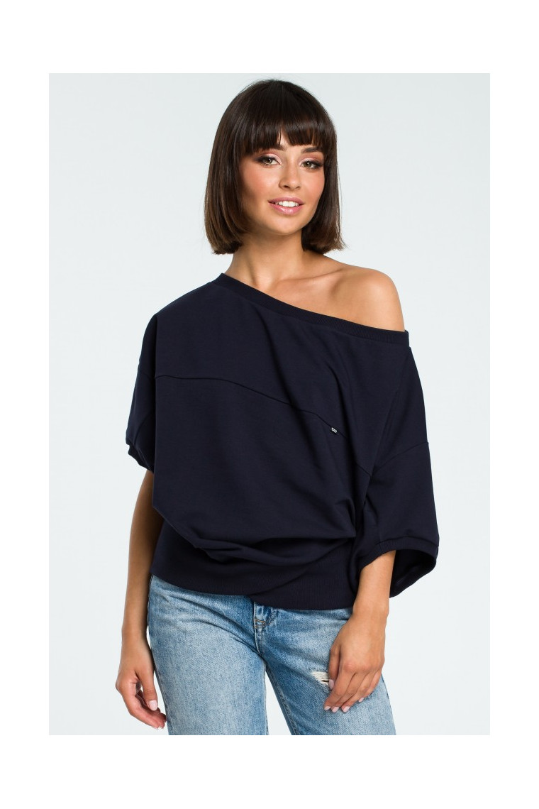 BEWEAR B079 Oversized blouse with a wrap detail - navy blue