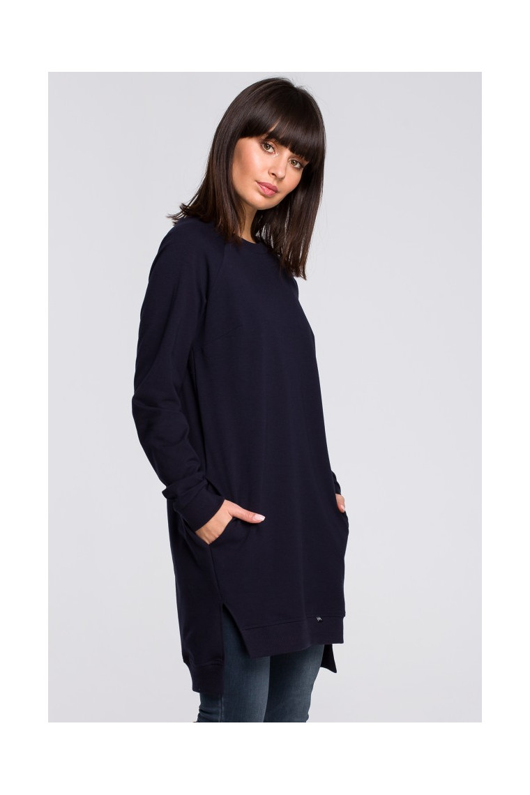 Styled with side splits and ribbed trim hem that layers beautifully, this vibrant cotton-blend sweatshirt is sure to become a cool-weather everyday staple.