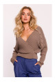 M809 Apcirpts džemperis ar V veida kakla izgriezumu - kapučīno krāsā