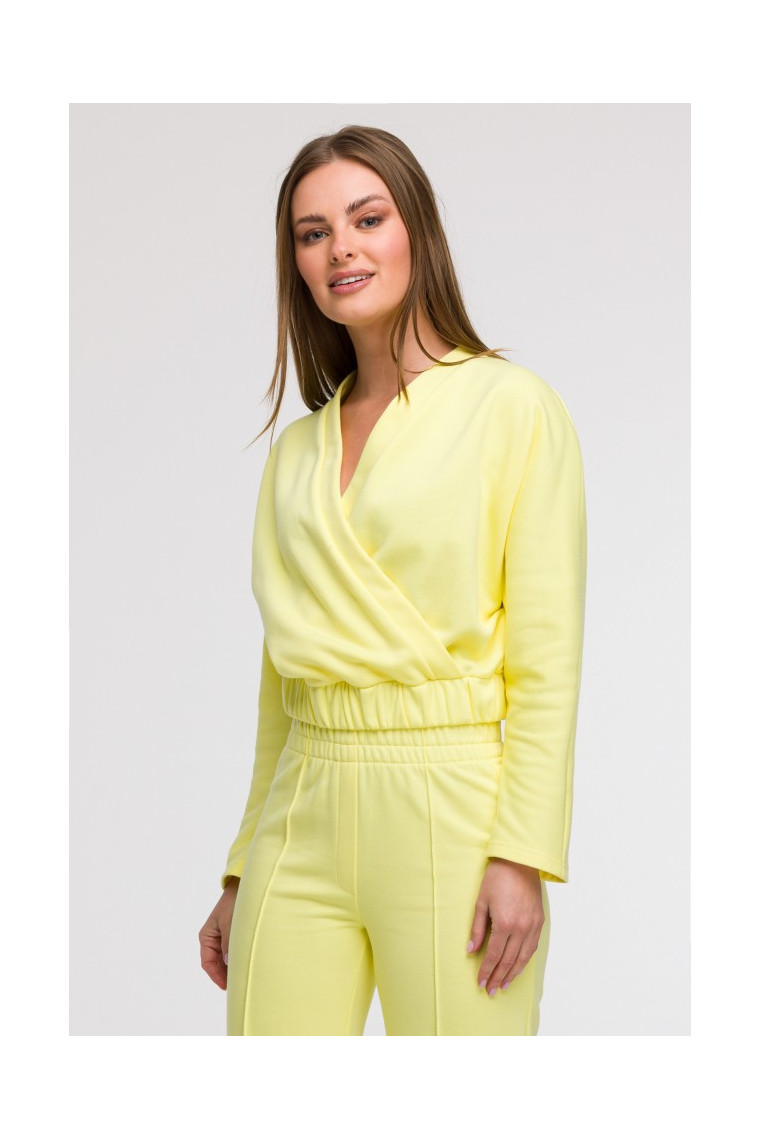 Fit: Loose wrap-style sweatshirt (overlapping front in a V shape), with an elastic waistband that accentuates the silhouette