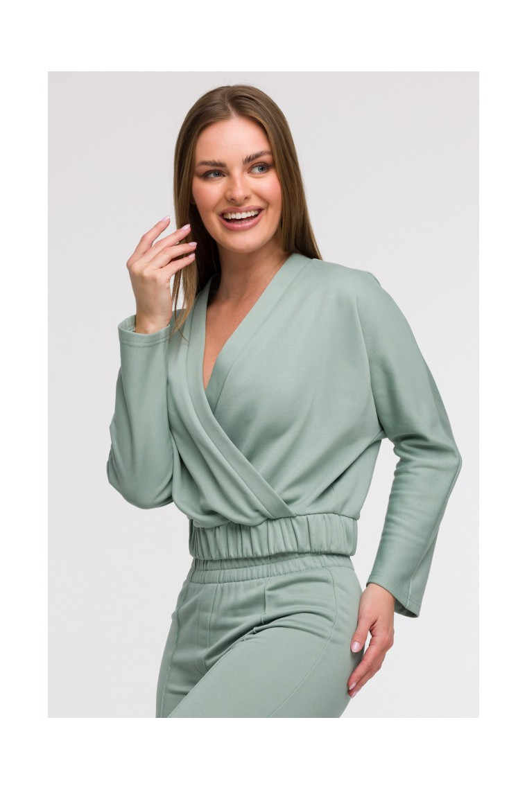 Fit: Loose wrap-style sweatshirt (overlapping front in a V shape), with an elastic waistband that accentuates the silhouette