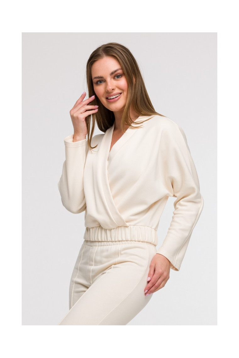 Fit: Loose wrap-style sweatshirt (overlapping front in a V shape), with an elastic waistband that accentuates the silhouette