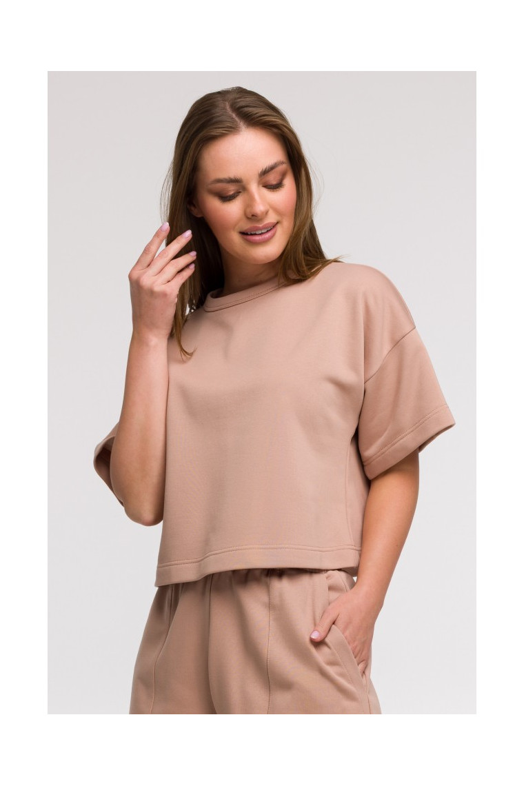 BEWEAR B294 Cropped sweatshirt with short sleeves - mocca