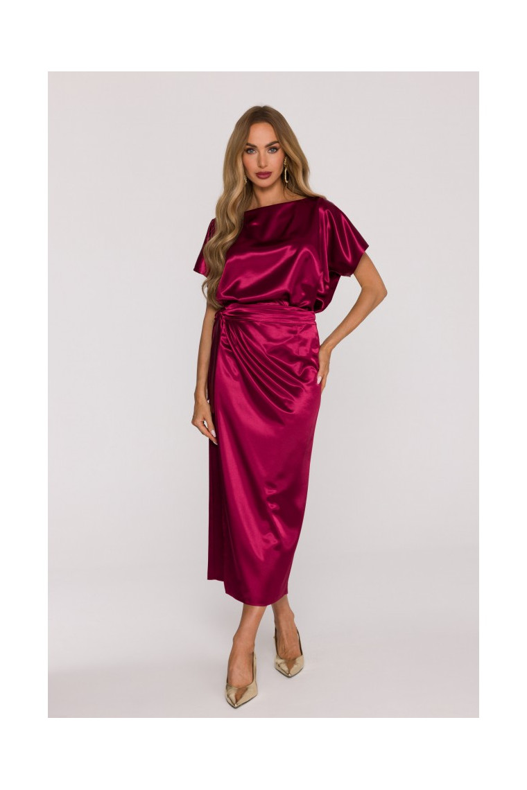 MOE M887 Wrap style satin dress - maroon