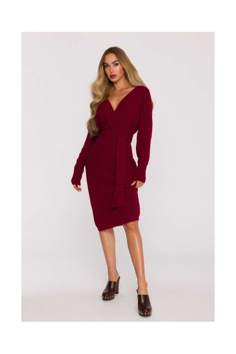 MOE M810 Džempera kleita ar V veida kakla izgriezumu - bordo krāsā