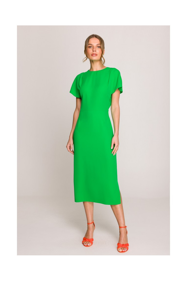 Stylove S398 Pencil dress with split on the side - green
