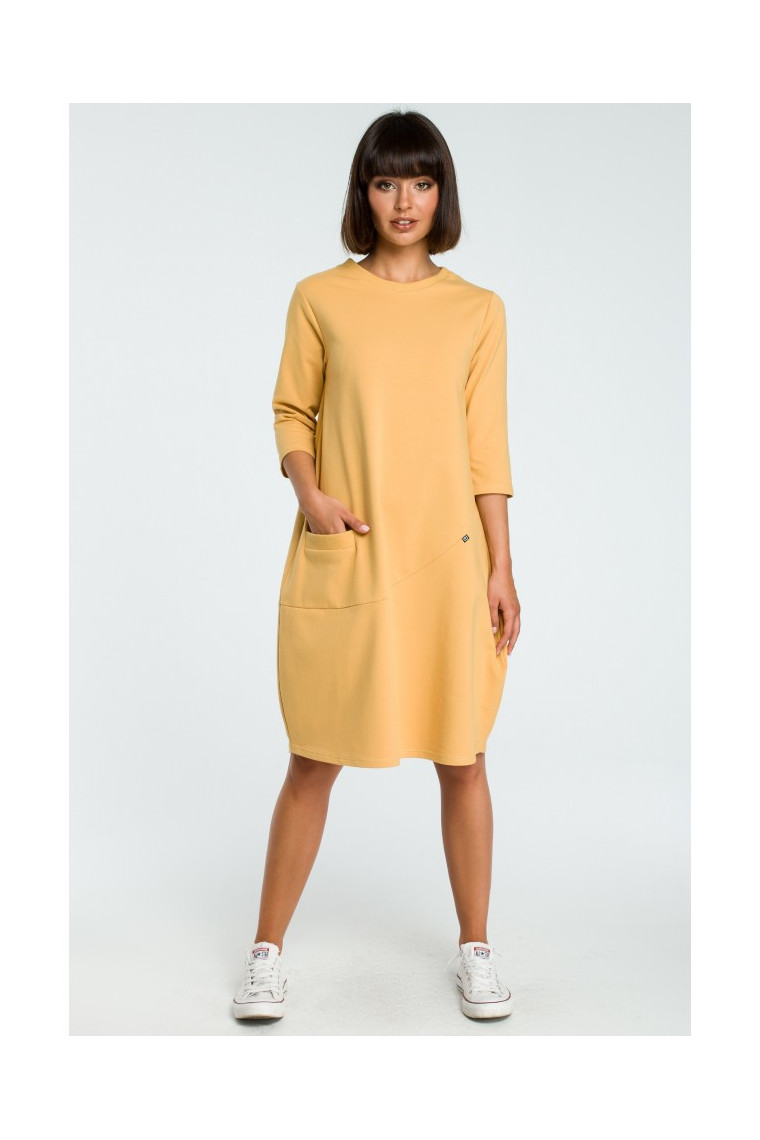 BEWEAR B083 Oversized dress with a front pocket - yellow
