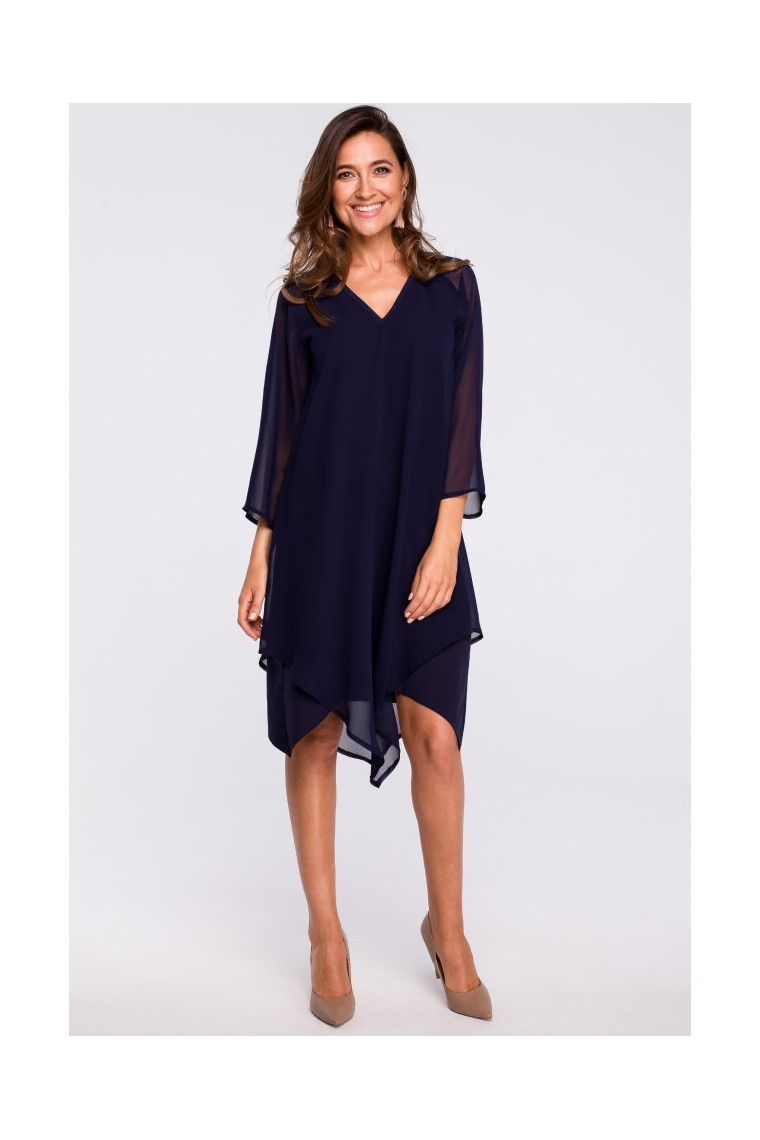 Plūstošs šifons un asimetrisks piegriezums piešķir romantisku pieskārienu šai vieglajai, brīvi piegulošajai boho kleitai.