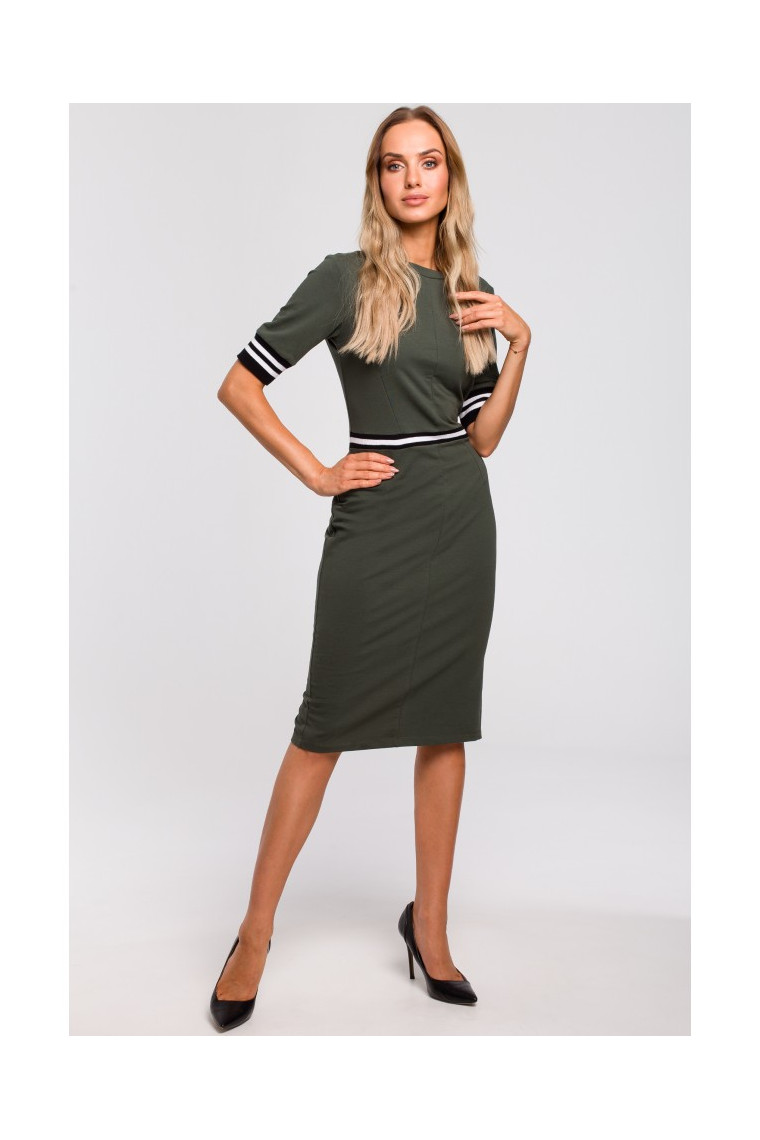 Tagad jūs varat būt eleganta un ērta, valkājot svārku kleitu ar svītrainām rievotām piedurknēm un jostas jostu.