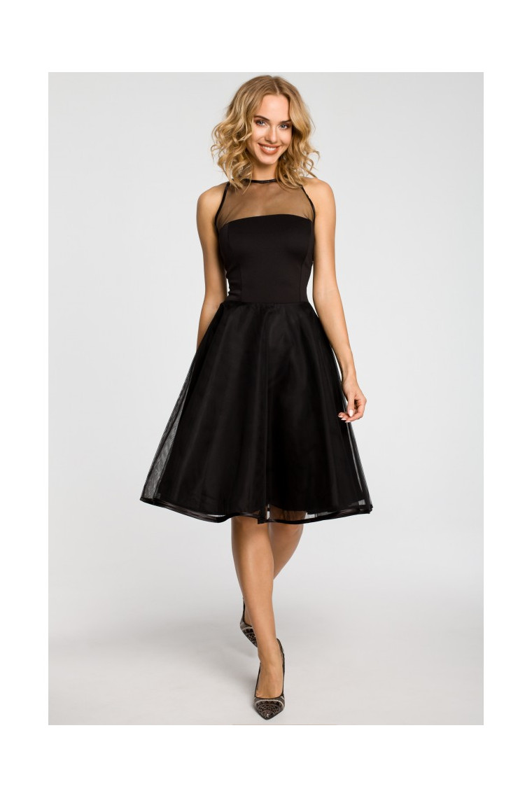 M148 Vakara kleita līdz ceļgaliem ar tīklveida apmetumu - melna