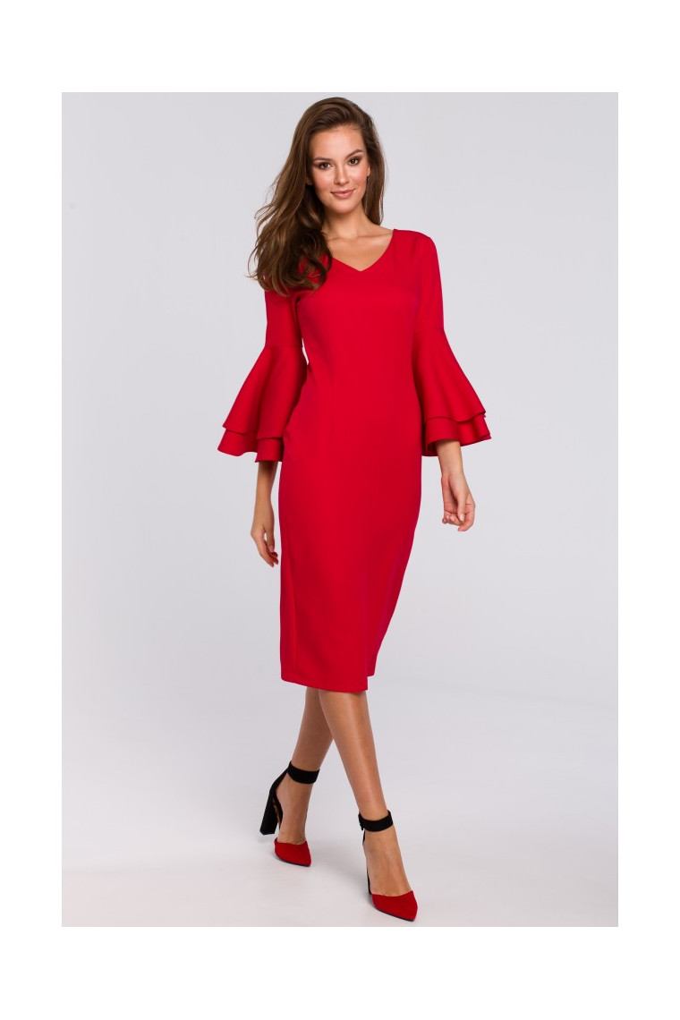 makover K002 Svīteru kleita ar saritinātām piedurknēm - sarkana