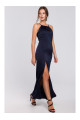 Ultra-feminine halter neck dress. With its longline silhouette and a high front split you will feel sexy and confident. Neckline is adjustable thanks to tie strings in the back.