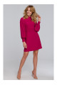 A dress for special occasions. The closed top with a stand-up collar contrasts with the short bottom, creating balance. The thick, gathered belt at the waist draws attention, emphasizing the figure. Puffed sleeves with covered buttons at the cuffs are details that give the whole thing a unique character.