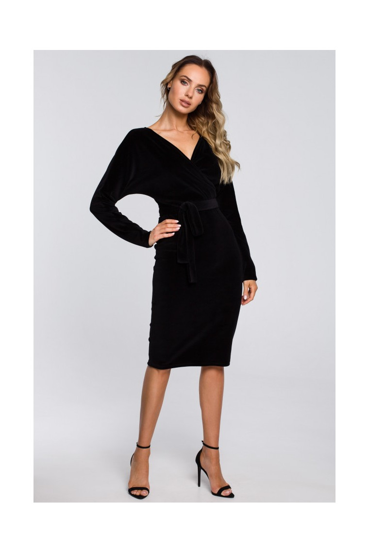 You will love everything about this dress - the wrap top with kimono-type sleeves, curve-hugging fit with a moderate stretch and a tie belt cinching the waist. The velvet fabric only adds glamorous touch to this perfect occasion outfit.