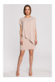 This dress flatters any figure type. Featuring a straight cut and above knee length it is defined with an asymmetric outer layer that hides any imperfections.