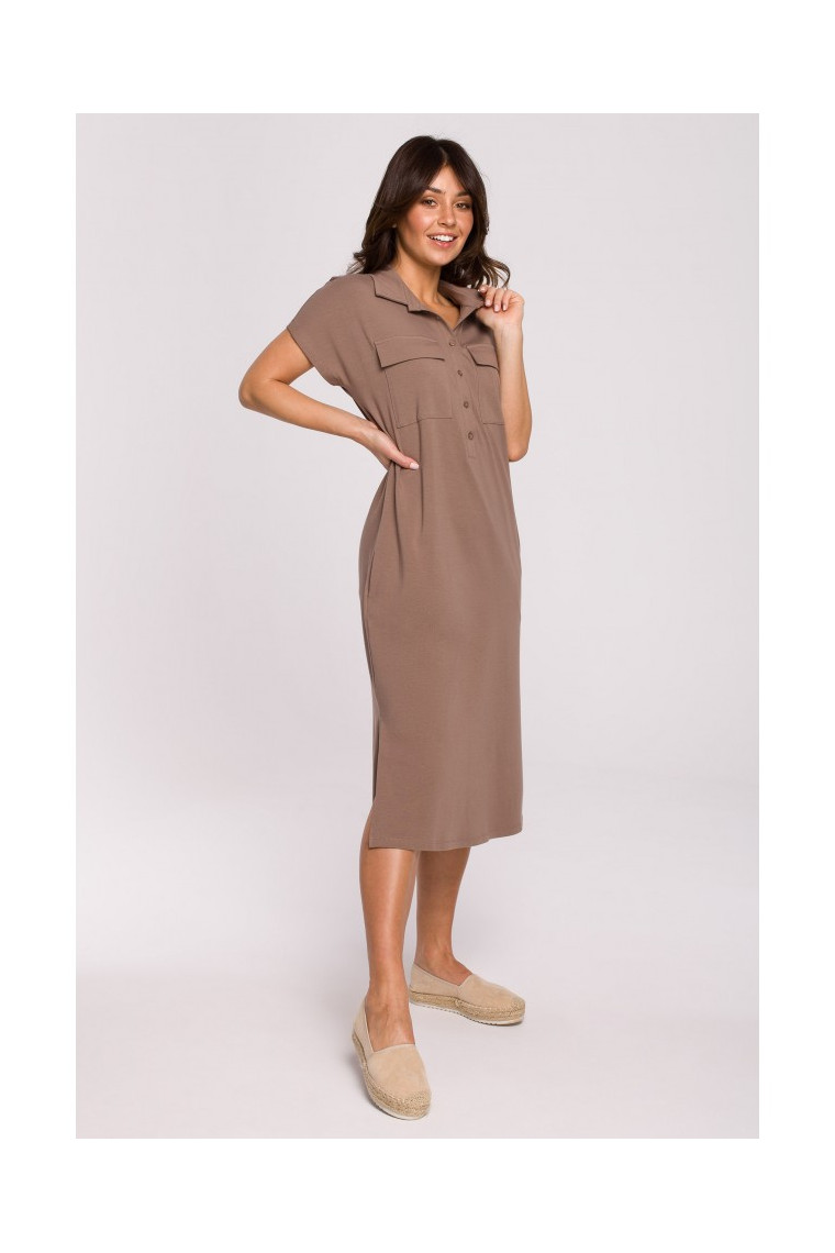 BEWEAR B222 Safari dress with flap pockets - cocoa