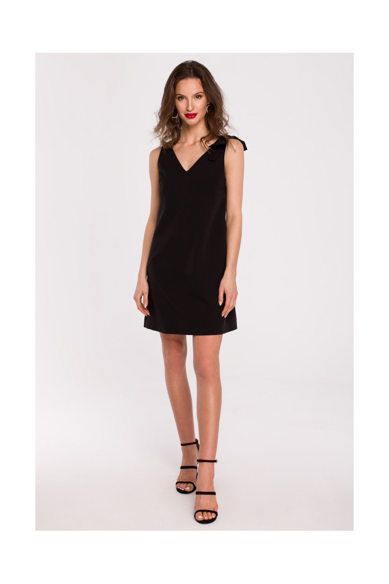 makover K128 Vienmērīga A-veida kleita ar loku - melna