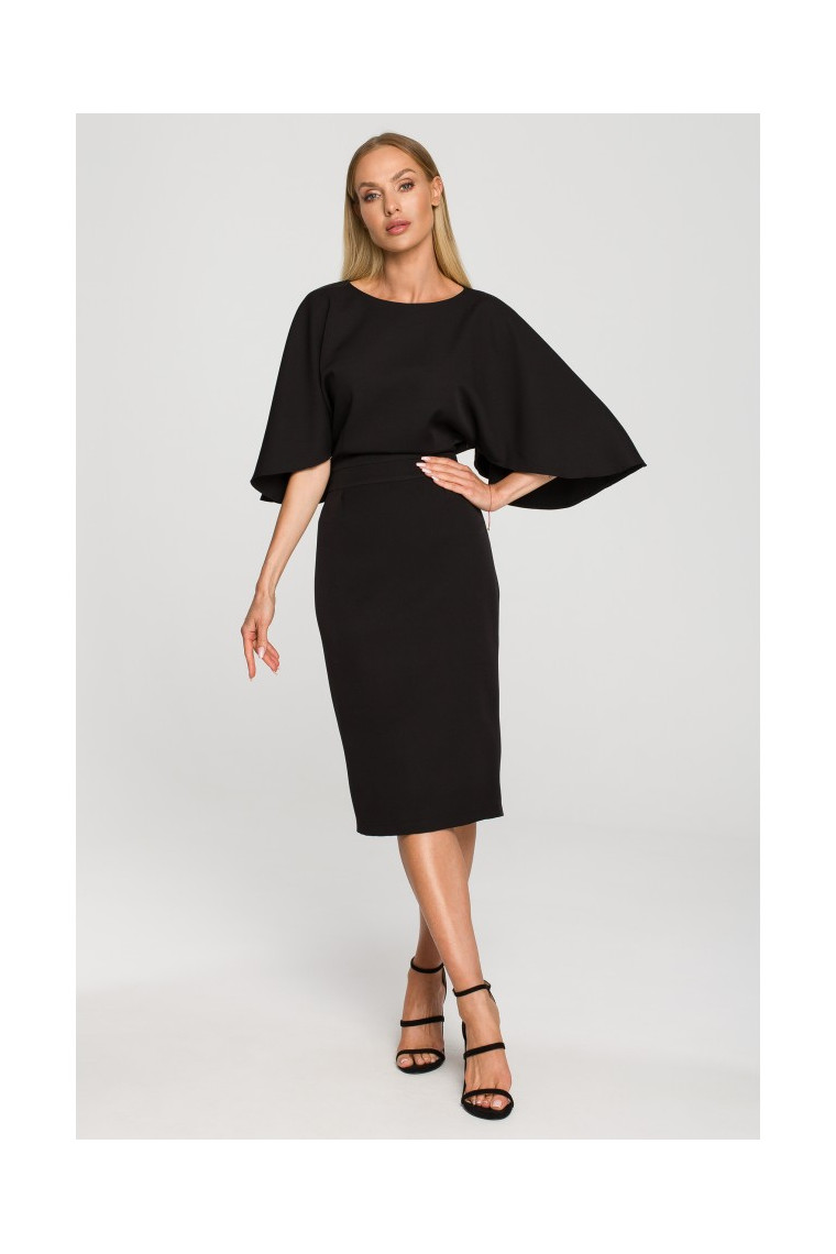 MOE M700 Apmetņa kleita ar kimono piedurknēm - melna