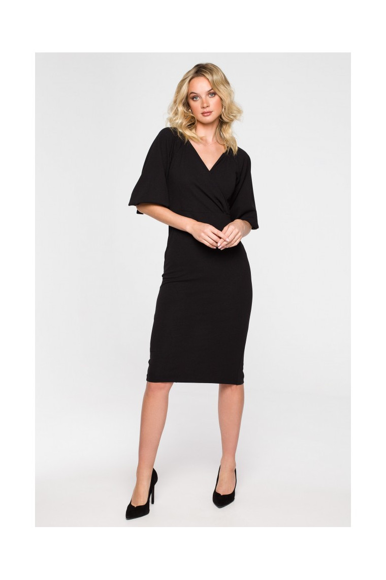 makover K152 Apmetuma kleita ar pūkainām piedurknēm - melna