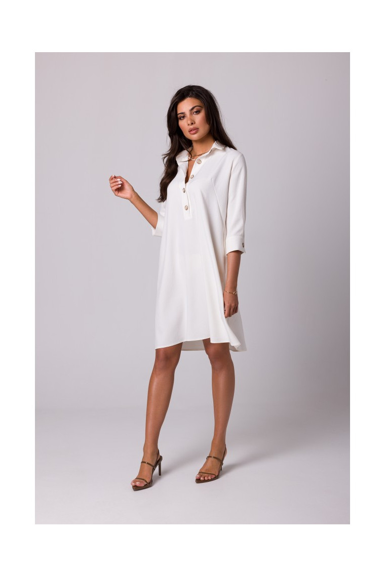 BEWEAR B257 Kreklu kleita ar izplēstām šķēlītēm - krēmkrāsaina