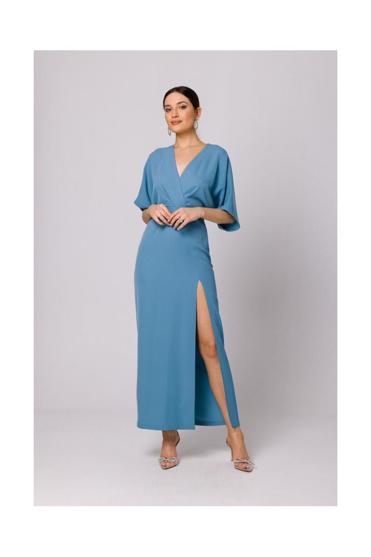 Mums patīk šīs maxi kleitas garais siluets, augsts kāju šķēlums un kimono piedurkņu dizains.
