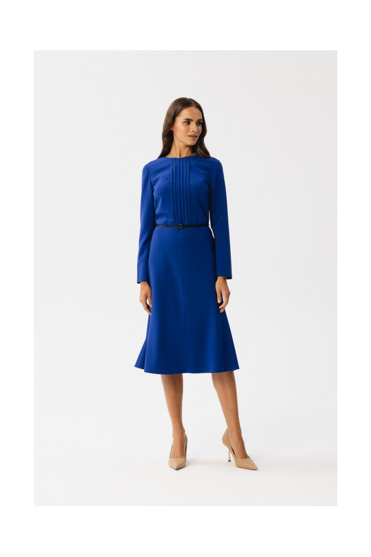 kleita ar dekoratīvām vertikālām ielaidumiem priekšpusē