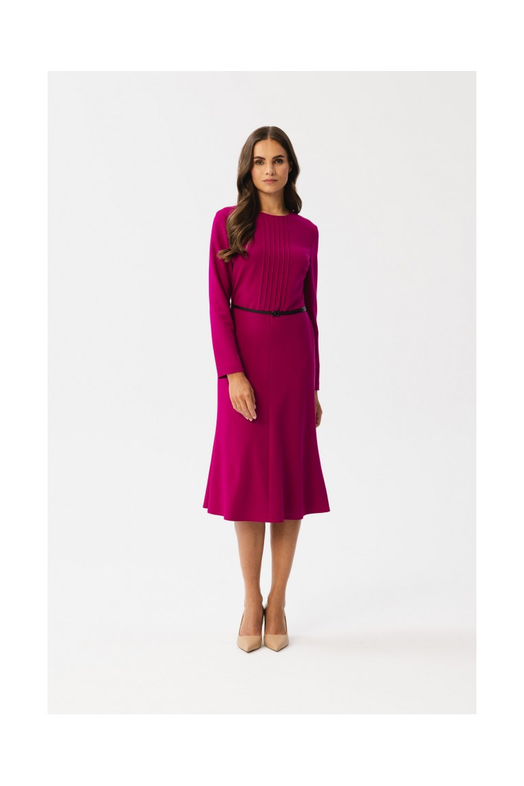 kleita ar dekoratīvām vertikālām ielaidumiem priekšpusē