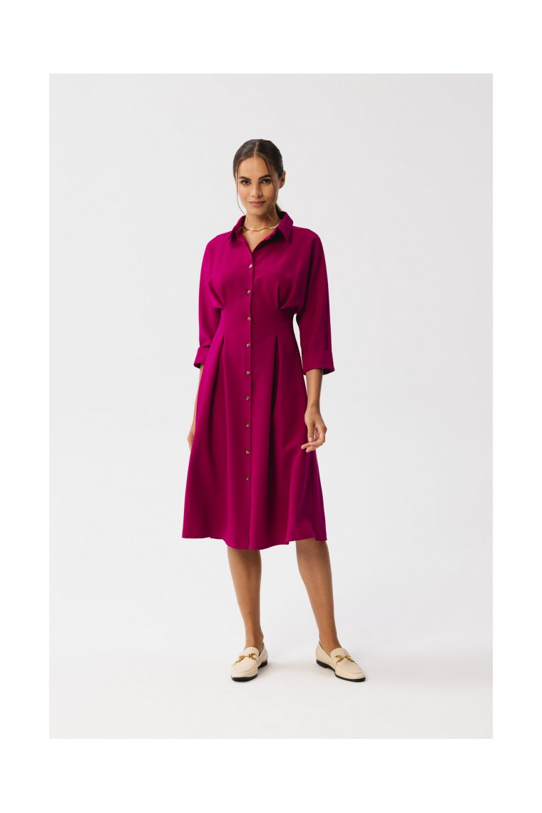 S351 Kreklu kleita ar pogām priekšpusē - plūmju krāsas